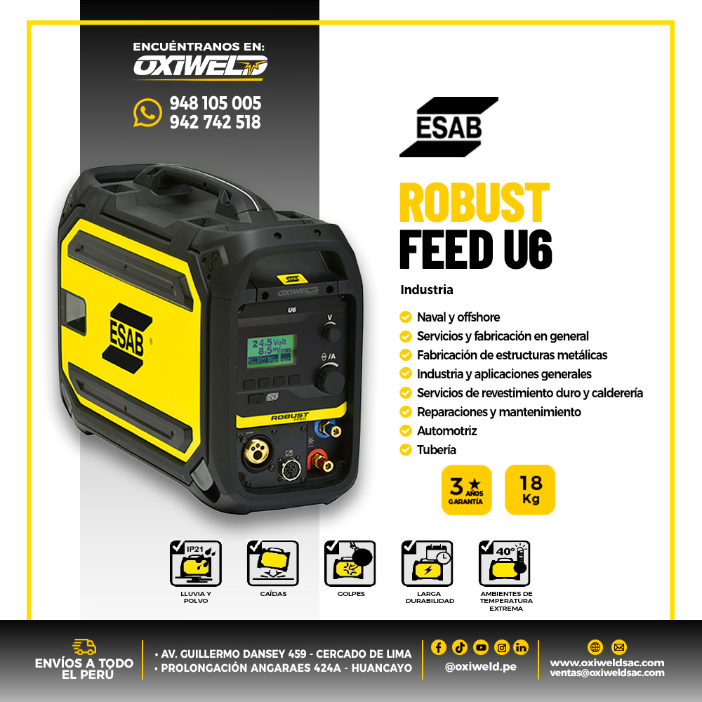 En resumen, el Robust Feed U6 es una solución confiable y versátil para industrias como metalmecánica, construcción, minería y fabricación pesada, donde la durabilidad y el rendimiento son clave.