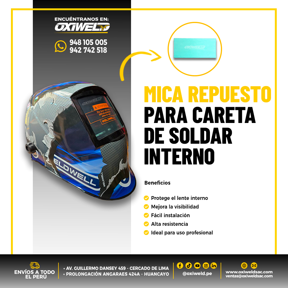 La mica interna WW para careta Airpro 2.5 es un componente fundamental para proteger el lente interior de la careta de soldar, evitando daños por partículas, polvo y residuos generados durante el trabajo.