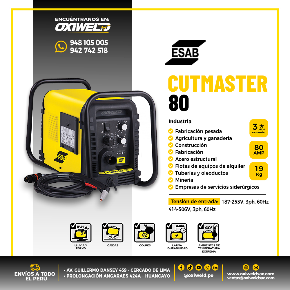 La ESAB Cutmaster 80 es la solución perfecta para quienes buscan potencia y precisión en corte por plasma.