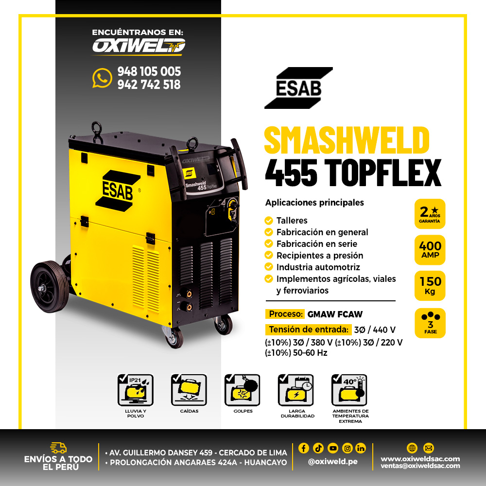 En resumen, la ESAB Smashweld 455 TopFlex es una excelente opción para quienes buscan: