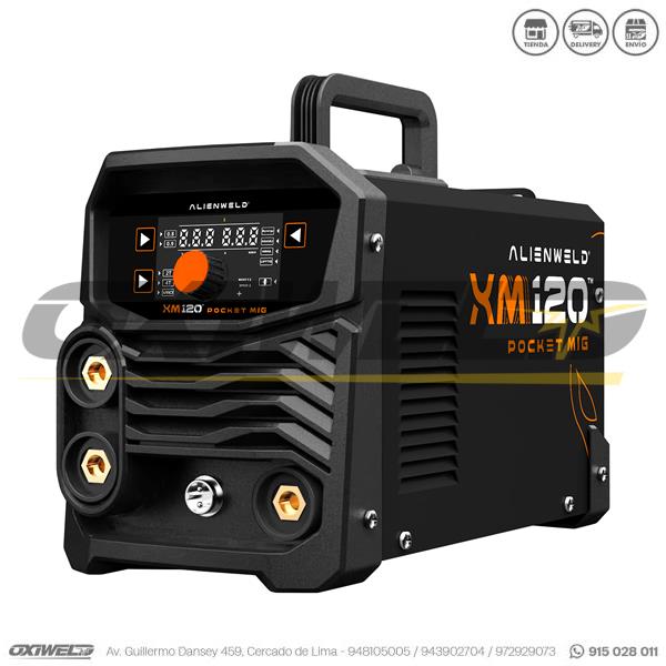 La máquina de soldar Alienweld® XM120 Pocket MIG™ incluye una fuente de alimentación de soldadora MIG con salida de voltaje invariable, fabricada con tecnología avanzada de inversor IGBT desarrollada por nuestra empresa. Con un componente IGBT de alta potencia, el inversor convierte el voltaje de CC, rectificado a partir de la entrada de CA de 50Hz/60Hz, en voltaje de CA de alta frecuencia de 42KHz, transformando y rectificando el voltaje. Sus características incluyen tecnología de inversor IGBT, control de corriente, alto rendimiento y estabilidad; circuito de retroalimentación cerrado, salida de voltaje invariable con capacidad de balanceo de hasta ±15%; control electrónico del reactor, soldadura estable con pocas salpicaduras, piscina de fusión profunda y excelente formación del cordón de soldadura; voltaje de soldadura preajustable con visualización en el voltímetro; observación simultánea de corriente y voltaje de soldadura; alimentación lenta del alambre al iniciar el arco, eliminación de la bola de fusión después de soldar, arranque confiable del arco; además de ser pequeña, ligera, fácil de operar, económica y práctica.