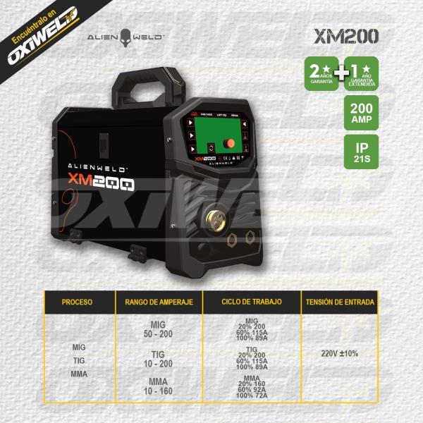 Alienweld XM200 es el equipo mas liviano de la línea XM de Alienweld, es un equipo Multiprocesos MIG/TIG/MMA potente, está equipado con componentes de alta calidad, lo que garantiza una excepcional performance en todos los procesos, este equipo cuenta con un ciclo de trabajo pesado y viene equipado con sistemas de protección de corriente, voltaje y temperatura. Esta Fuente cuenta con un Microprocesador de 32 bits, que optimiza la eficiencia energética y entrega salidas de corriente mas estables y potentes que equipos de anteriores generaciones y tecnologías.