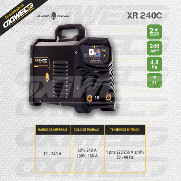Alienweld XR240C pertenece a la nueva generación de equipos Alienweld, con un diseño vanguardista y moderno. Siendo uno de los equipos más potentes y resistentes del mercado, con un ciclo de trabajo superior está listo para ser utilizado en cualquier trabajo; ya sea; en el campo, en un taller o en una fábrica. La Alienweld XR240C al igual que todos los equipos Alienweld cuentan con los más altos estándares de calidad.