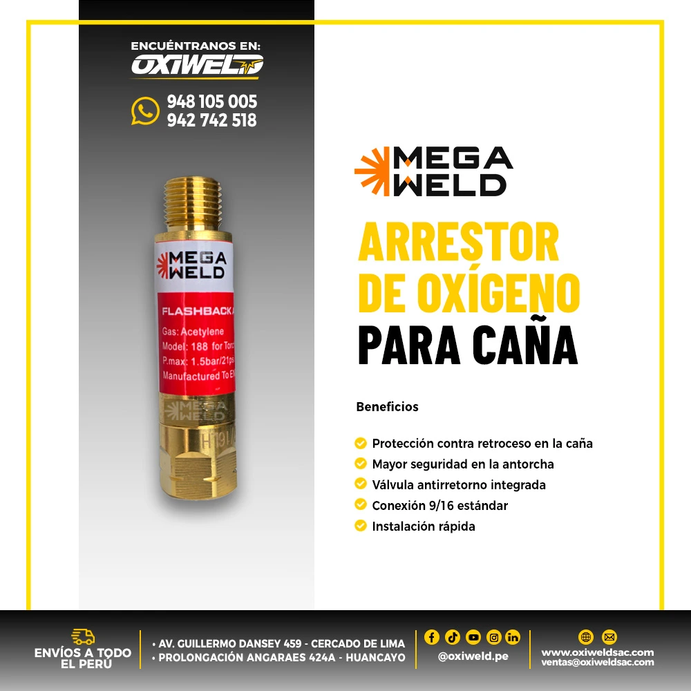 El arrestor para caña de oxígeno modelo Victor es un componente de seguridad indispensable en sistemas de oxicorte y soldadura. Su función principal es evitar el retroceso de llama (flashback), impidiendo que esta regrese hacia la manguera o el cilindro, reduciendo riesgos y protegiendo al operario.