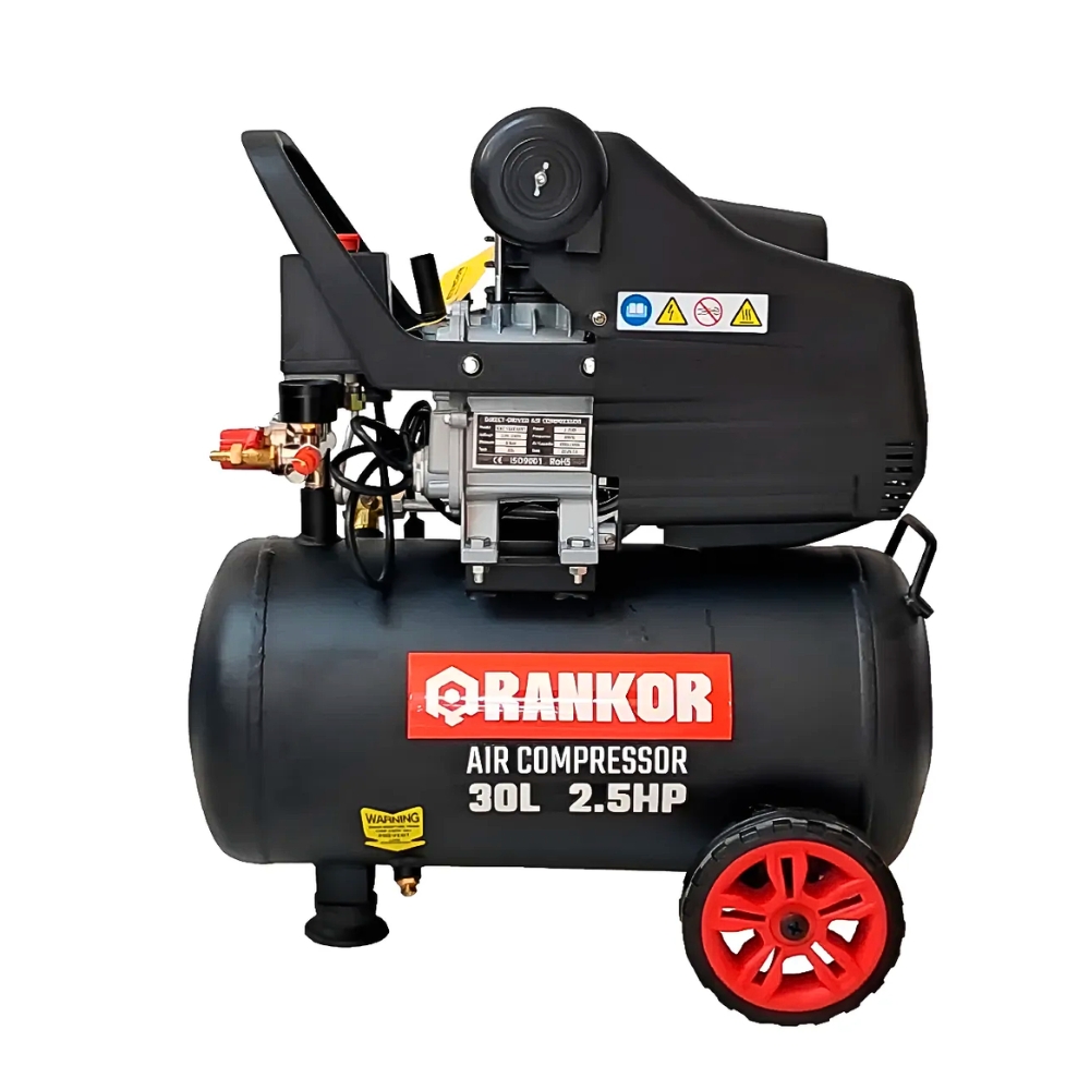 Equipa tu espacio de trabajo con la compresora RANKOR 2.5HP 30L y optimiza tus tareas con aire comprimido confiable.