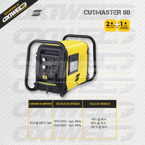 Esta unidad corta acero al carbono, acero inoxidable o aluminio hasta 30 mm (1 1/8″) de espesor. El Cutmaster 60 combina su potencia con el rendimiento y las prestaciones de sobra conocidas de la antorcha 1Torch® líder en el mercado. Los equipos se entregan completos con inversora plasma, antorcha SL60 1Torch, juego de consumibles, filtro de aire, pinza a tierra y cable de alimentación. El sistema se suministra totalmente equipado y listo para el corte.