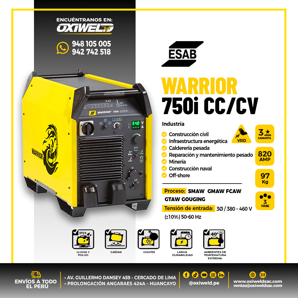 Finalmente, la ESAB Warrior 750i CC/CV es ideal para profesionales que buscan una máquina confiable, resistente y preparada para los trabajos más exigentes del sector industrial.