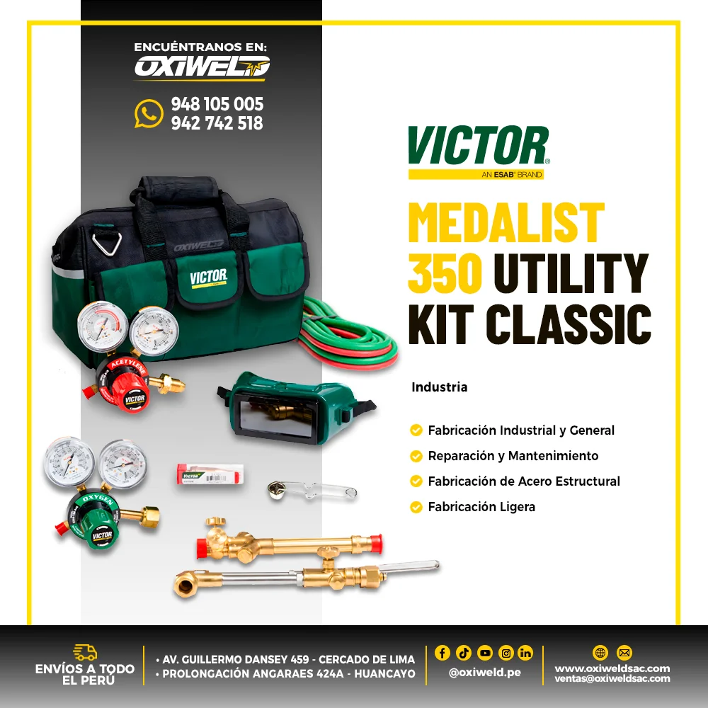 El Medalist® 350 Clásico Victor de ESAB es un kit de herramientas de oxicorte completo diseñado para trabajos pesados en corte y soldadura industrial.
