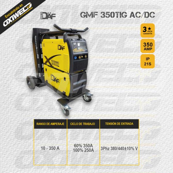 La máquina de soldar Inversora TIG AC/DC de 350 amperios es una solución profesional de alto rendimiento diseñada para trabajos exigentes en soldadura TIG y MMA. Compatible con procesos GTAW (HF / Lift TIG) y SMAW (arco eléctrico), esta soldadora ofrece una gran versatilidad para soldar acero al carbono, inoxidable y aluminio.