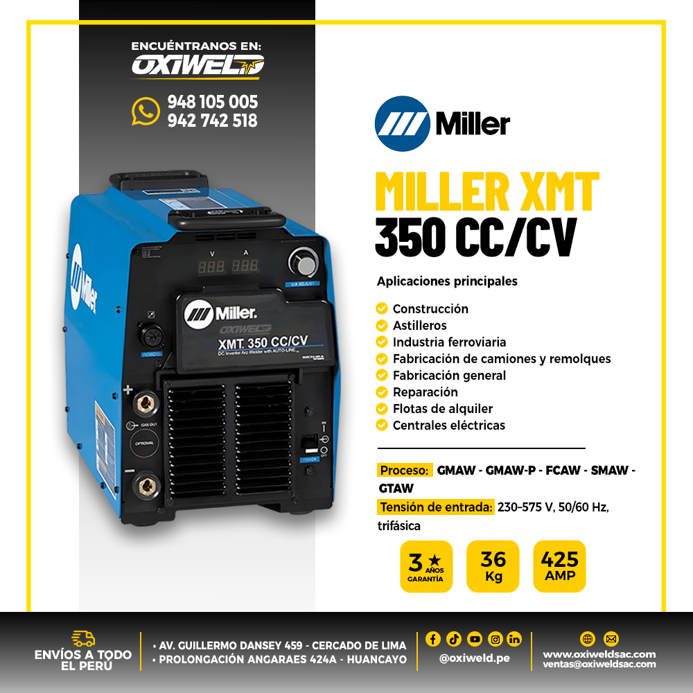 La Miller XMT 350 CC/CV 208-575V es una máquina de soldar multiproceso diseñada para ofrecer alto rendimiento, versatilidad y confiabilidad en aplicaciones industriales.