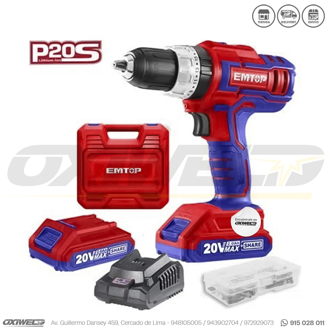 TALADRO PERCUTOR 1/2 20V LITIO + 2 BATERIAS EMTOP